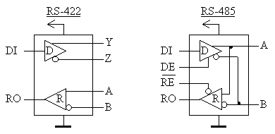 D (driver) - передатчик; R (receiver) - приемник; DI